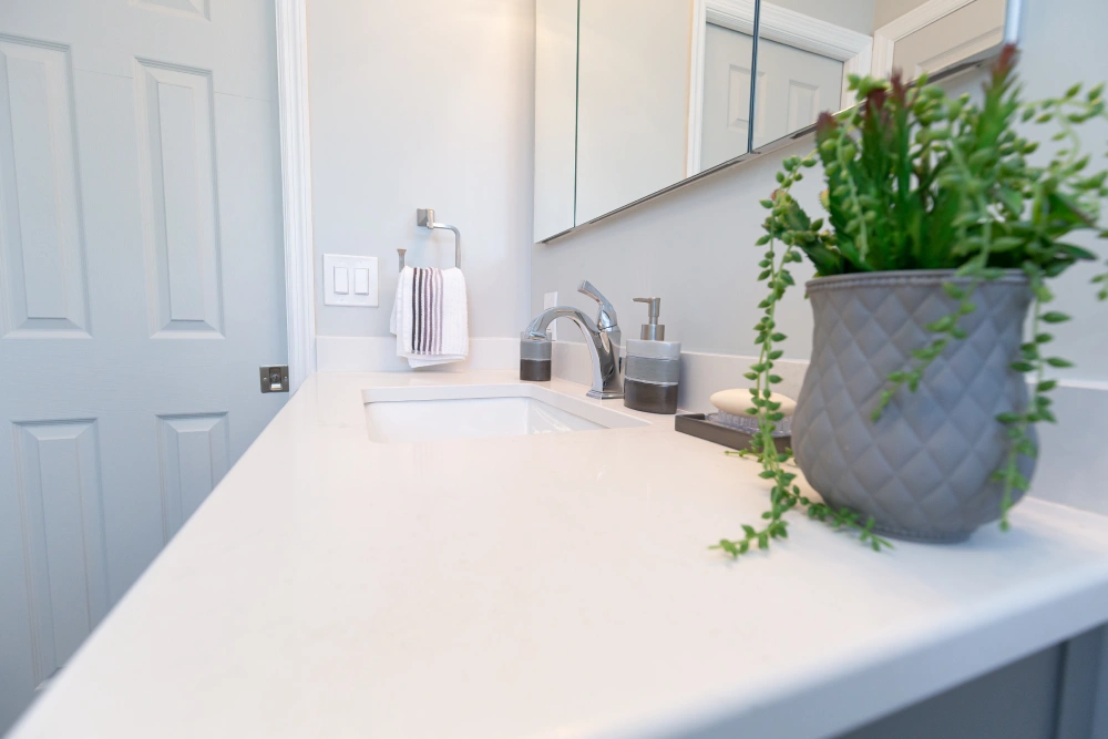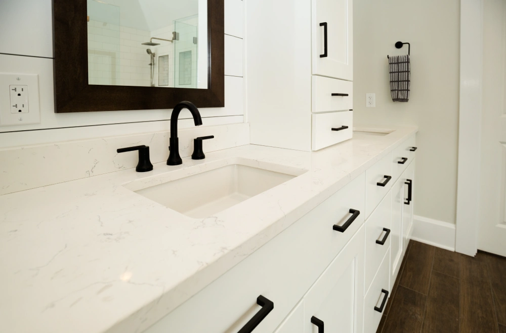 Match tones to cabinetry, flooring, and lighting.