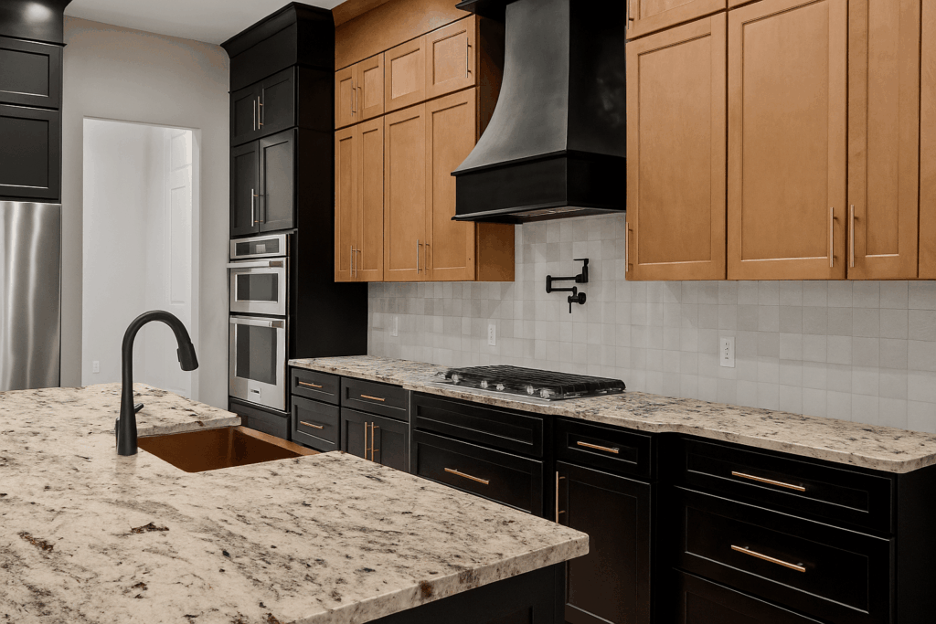 Start with your cabinet color, lighting, and overall design style. Lighter kitchens often pair well with warm beige or white granite, while darker kitchens can handle deeper hues like black granite or blue-gray tones. Bring samples and test under your kitchen lighting if possible.